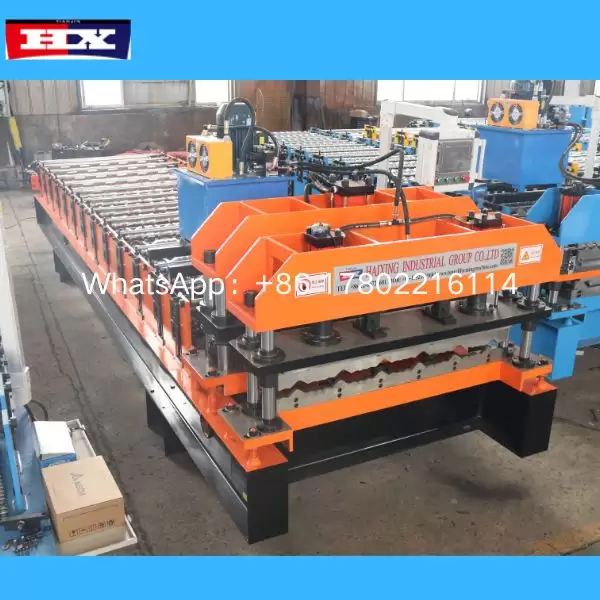 A: Not completely. Suitable for automatic three-layer galvanized steel trapezoidal corrugated roofing sheet roll forming machines, glazed tiles. It can produce more than 3 panels.